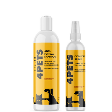 El kit incluye nuestro Antifungal Shampoo (8 oz), altamente efectivo contra hongos y bacterias, junto con nuestro Comfort Anti-Itch Spray (8 oz), que brinda alivio inmediato y duradero del picor.